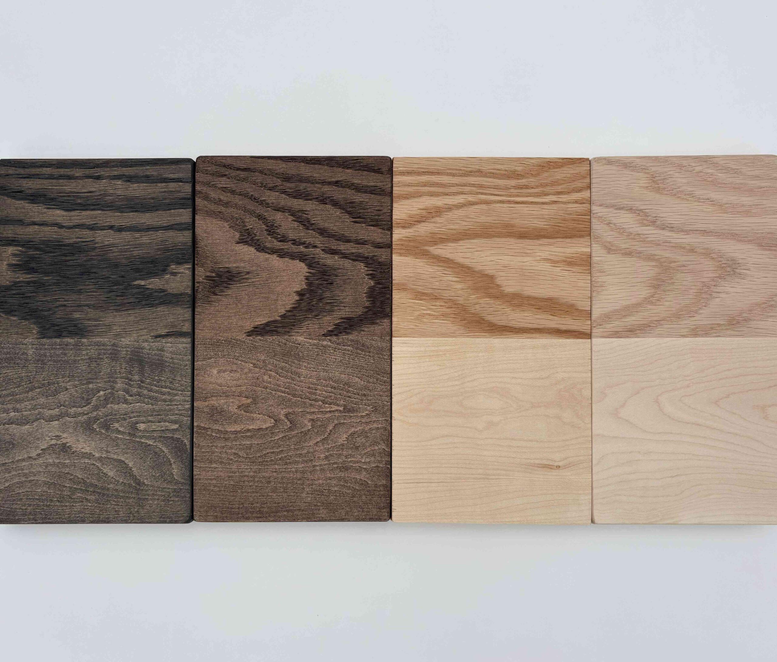 We are pleased to present our available wood finishes. Each finish is featured below in Red Oak and Maple.